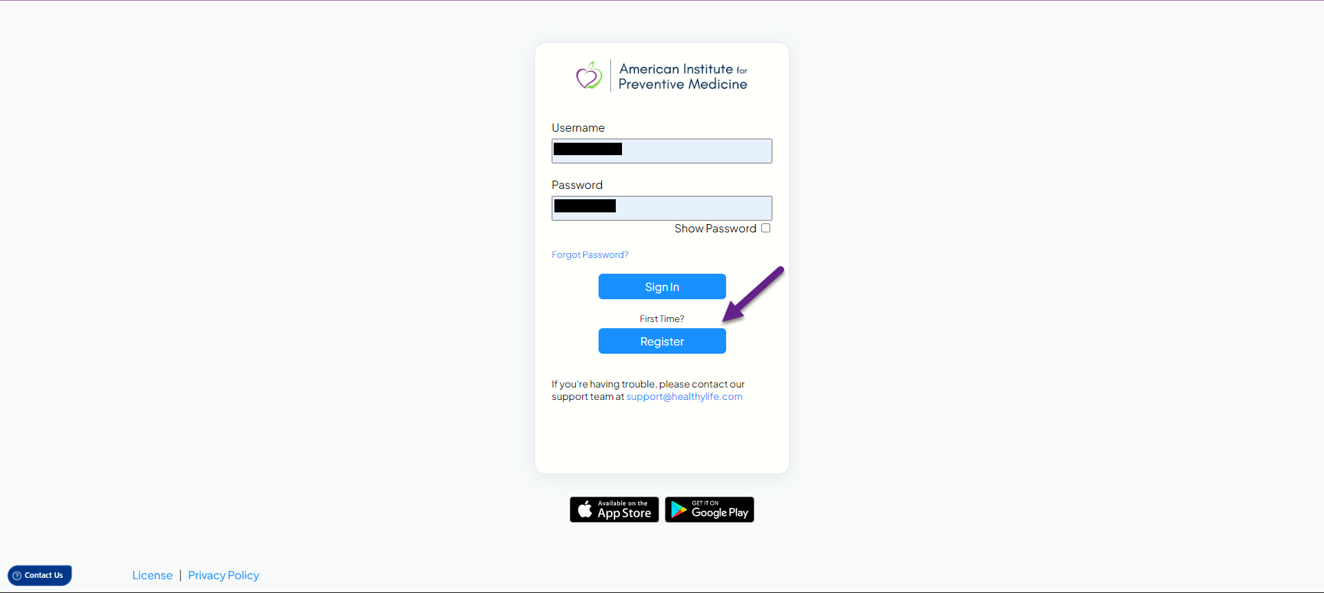 Depending on your program, your username and password credentials may be pre-configured by your provider. Most will go to the "Register" button on the log-in page unless told otherwise by your company.